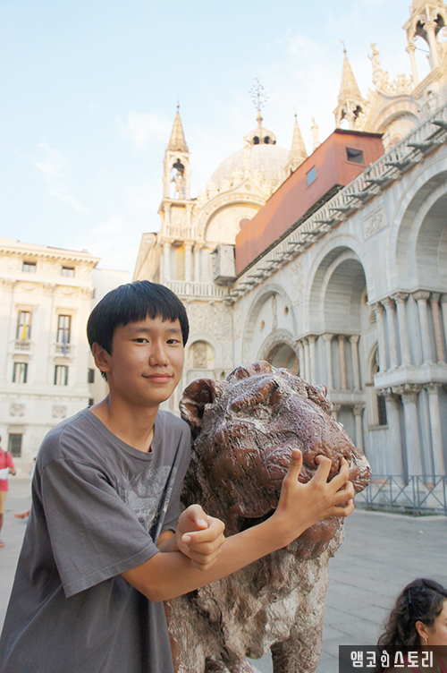 광장 한 구석에 있는 사자상 앞에서 기념사진을 남겨본다. 관광객들이 얼마나 만져 댔는지 돌이 반들반들 윤이 난다. 아들에게 포즈를 잡으라고 하니 이렇게 사자의 코를 후빈다.