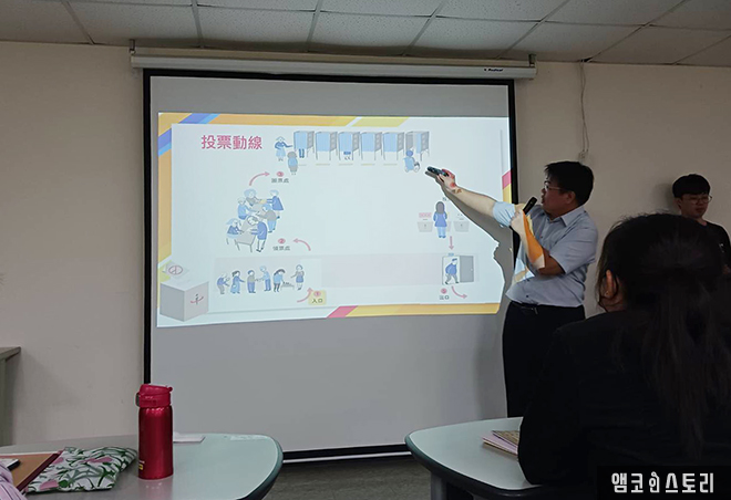 신주시 공무원들이 투표 절차에 대해 설명을 해줍니다. 우리나라와 거의 비슷한 방법이네요.
