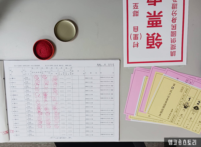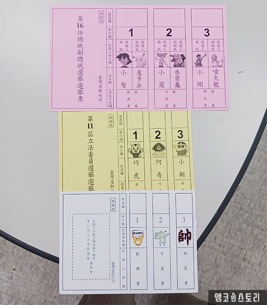 신분증 확인이 끝나면 총 세 장의 투표권을 수령하게 됩니다. 하나는 총통을 선택하는 용지이며, 두 번째 것은 입법위원, 그리고 마지막은 정당 선택 용지입니다.