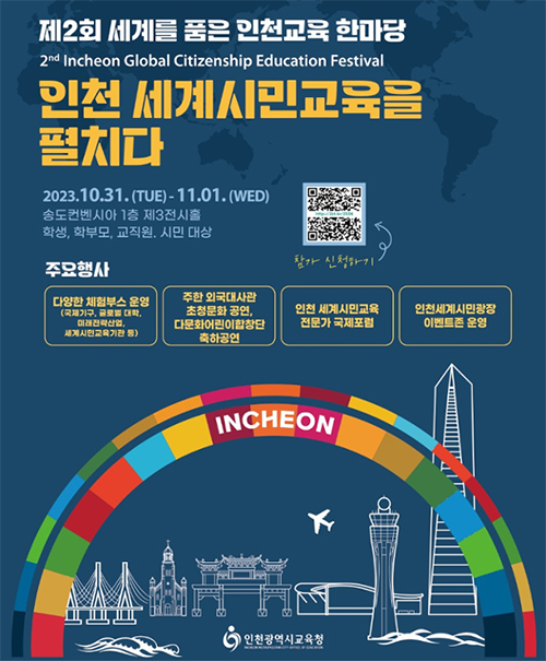 ‘인천 세계시민교육을 펼치다’라는 주제로 열리는 올해 행사는 인류 보편적 가치인 평화와 인권, 문화 다양성 등을 이해하고 실천하는 시민을 양성하는 교육인 세계시민교육의 방향성을 모색하기 위해 마련됐습니다. 세계시민교육은 2015년 송도컨벤시아에서 열린 ‘세계교육포럼’을 계기로 국내외에서 본격 시작됐습니다.