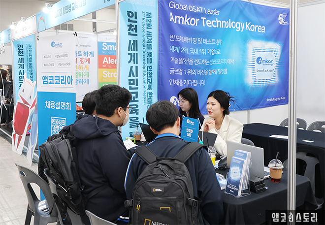앰코코리아를 비롯하여 유엔 국제연합재난위험경감사무국(UNDRR)과 스탠퍼드대학 연구센터, 인천항만공사, 한국조지메이슨대, 한국이민사박물관 등 70개 기관과 기업은 행사 기간 ‘세계 속 인천, 인천 속 세계’를 주제로 다양한 체험 부스를 운영했습니다.