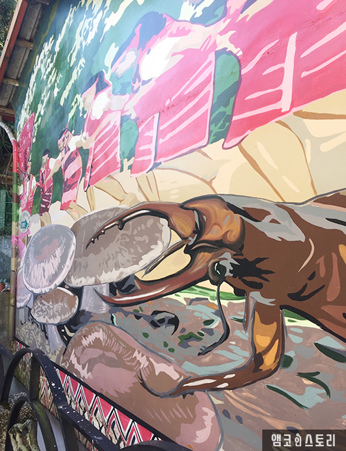 조금 지나 갈대숲이 나오니 가을 분위기가 물씬 납니다. 길지 않은 산책로를 따라 걷다 보니 마을이 나오고 예쁜 벽화가 있어 사진에 천천히 담아봅니다. 낙엽이 진 오동나무숲이 무척 운치 있게 느껴집니다.