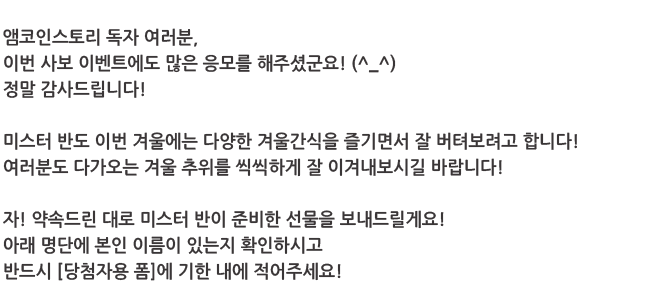 | 나의 최애 겨울간식은? _ 웹진 [앰코인스토리] (416) | 2023.11.02 |