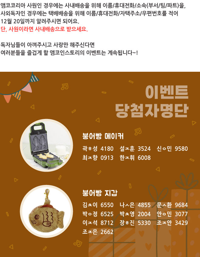 | 2024 앰코인스토리에 바란다! 이벤트 결과 발표_웹진 [앰코인스토리] (2) | 2023.12.21 |