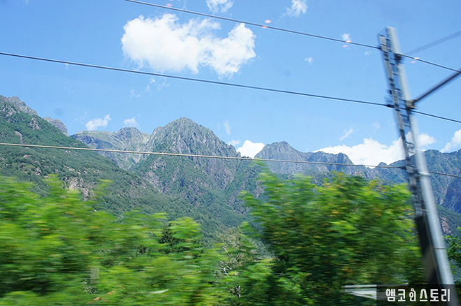 높은 산들이 보이는 것을 보니 스위스가 가까워지는 듯하다.