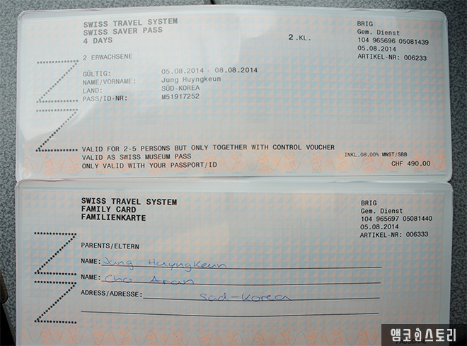 브리그역에서 내려 스위스 패스 4 day 세이버 2장을 끊은 다음, 아이들은 패밀리 카드를 발급받았다. 이제부터 4일 동안은 무제한 여행 가능한 것이다.