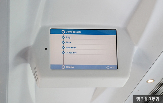 (지난 호에서 이어집니다) 기차를 타고 이제 스위스로 이동한다. 아이들과 아내는 편하게 있지만 필자는 긴장의 연속이다. 도모도솔라역을 지나 브리그에서 내려 스위스 패스를 구매해야 하기 때문이다. 천정을 보면 저렇게 지나가는 역의 순서가 나와서 편리하다.