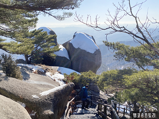 꼭 정상을 가지 않아도 전망 좋고 걷기 좋은 등산로가 참 많습니다. 그중 영봉은 일출과 일몰을 감상하기도 좋은 곳이고, 무엇보다 눈이 온 북한산의 아름다움을 느끼기 좋은 곳이라 여러분께 꼭 추천합니다. 꼭 한번 다녀와 보세요!