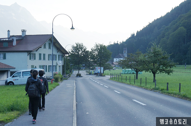 숙소에서 빌더스빌역까지 걸어가서 7시 50분 기차를 타고 인터라켄 OST역으로 이동해야 한다. 한적한 시골길을 따라 걸으며 들이마시는 상쾌한 공기와 아름다운 경치가 너무 좋다.