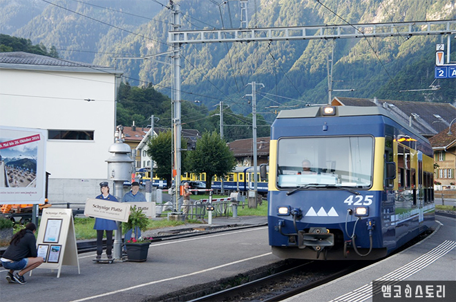 산악열차를 타고 고르너그라트 전망대로 이동해야 한다.