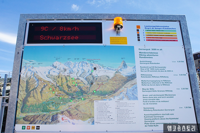 고르너그라트역에 내려 주위를 둘러보는데, 우와! 감탄사가 절로 나온다. 아까 스위스 마을에서 보았던 마터호른의 모습이 훨씬 멋지지만, 고르너그라트 전망대에서 보는 모습도 멋지다.