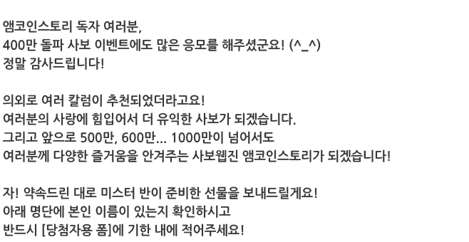 | 방문 400만 돌파! 이벤트 [앰코인스토리] (439) | 2024.02.01 |