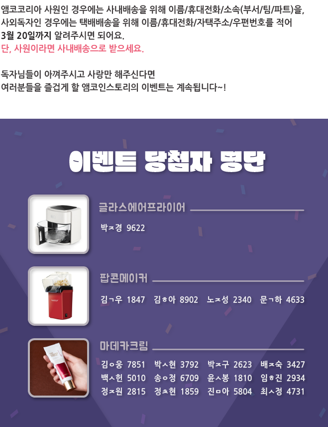 | 안전보건 퀴즈 이벤트 결과 발표_웹진 [앰코인스토리] (2) | 2024.03.26 |