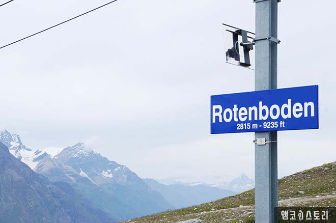 해발 2,815m에 있는 로텐보덴역에 도착했다. 시간을 보니 고르너그라트 전망대에서 한 시간 20분 정도 걸려 내려온 것 같다. 중간에 도시락 먹은 시간 포함.