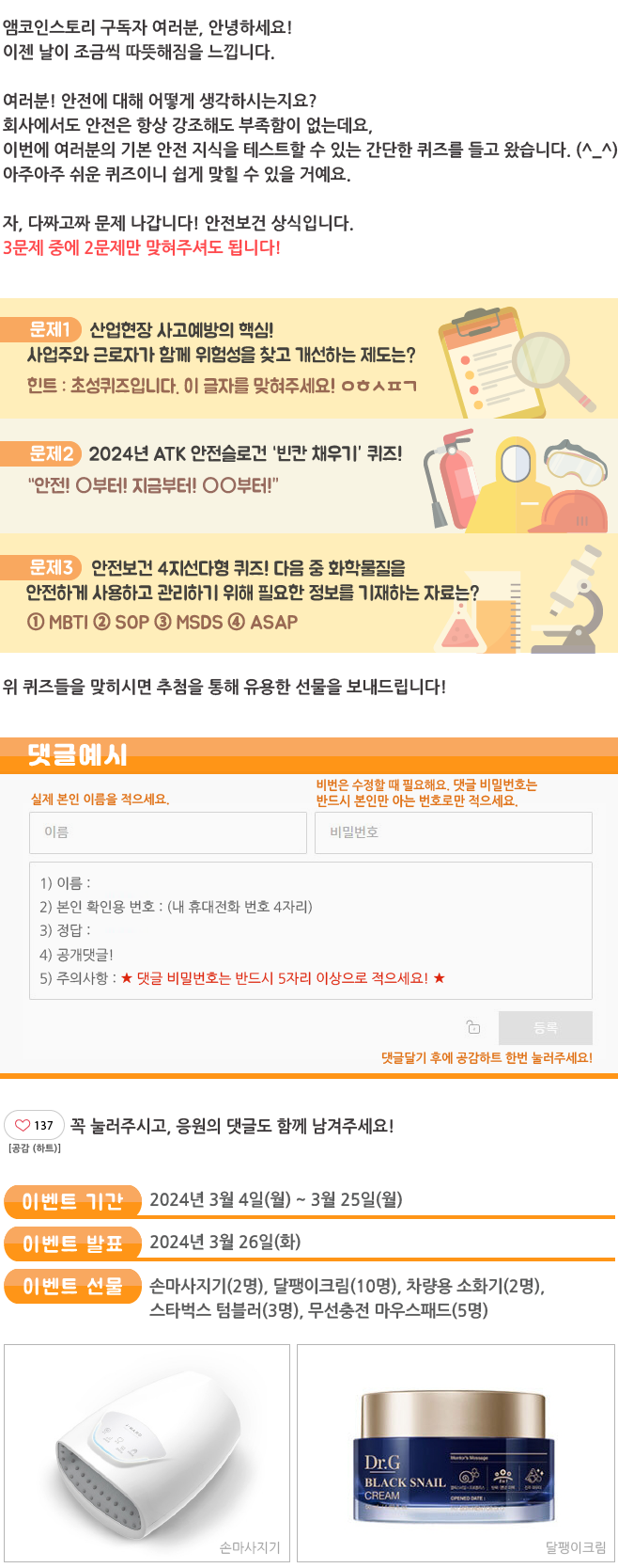 | 안전보건 퀴즈 이벤트 결과 발표_웹진 [앰코인스토리] (2) | 2024.03.26 |