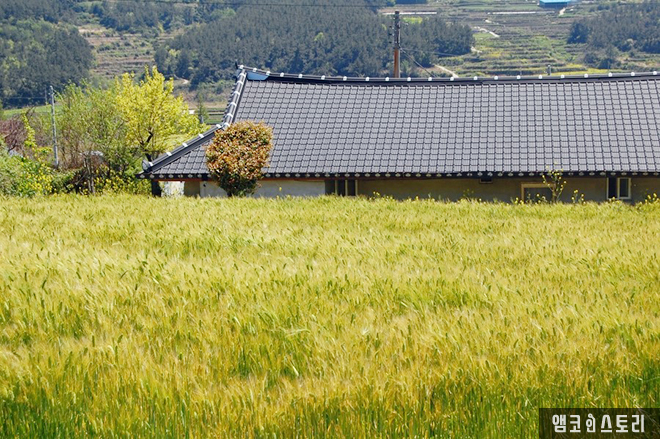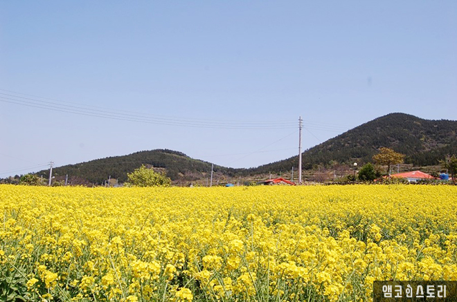 다음 날, 숙소를 나선 걸음이 신흥리 주변을 무목적으로 둘러보고 있어요. 유채꽃 흐드러진 청산의 한적한 길이 끝도 없이 이어집니다. 바람에 실려온 달콤한 꽃향기가 후각을 자극하면 만개한 유채꽃은 그 모습이 유난히 당당하여 시선을 한 번에 사로잡습니다. 화려함을 품은 꽃모가지가 유난히 빳빳한 유채꽃 집단이 봄날, 청산의 푸른 하늘과 대비된 풍경은 그 자체로 장관입니다.