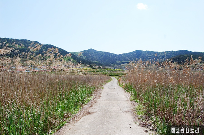 봄의 청산은 갈대 또한 흐트러집니다. 기다랗게 솟은 갈대가 바람결에 갈팡질팡하는 매한가지 풍경에 여지없이 위로받는 걸음이 느리게 이어집니다. 갈대밭 한 가운데 꼬불꼬불 난 길을 따라 내딛는 걸음, 흙길의 까끌함이 발끝에 차여 ‘끄르르’ 요상한 소리를 냅니다. 간지럼을 당하듯, 흙길이 웃는다면 꼭 이런 소리가 날 것만 같아요. 수풀 사이 군락을 이루는 마을은 옹기종기 그 모습이 정겹습니다. 마을에서 우뚝 선 건 듬성듬성 전봇대가 전부인 풍경에서 눈높이로 펼쳐지는 산등성이의 굴곡이 편안함을 선사합니다. 마을에서 제일 빠른 건 섬 전체를 누비는 마을버스입니다. 섬처럼 푸른색을 입은 버스는 오늘도 힘차게 부릉부릉, 마을 주민의 발이 되어 줍니다. 돌길을 뚫고 유채꽃이 피어났습니다. 한줌으로 떨어진 존재감이 어딘지 청산도를 닮아 있어요. 순도 높은 빨강의 색감이 배경의 초목과 대비되어 유난히 눈에 띄는 집, 반쯤 열린 대문은 안쪽으로 인기척 없이 고요하기만 합니다. 이름 모를 들꽃 앞에 한참을 머물러 있습니다. 이 또한 청산이 주는 느림의 미학이니 새끼 손톱만한 보랏빛 꽃은 봄이면 언제나 그곳에서 피고 지겠지요.