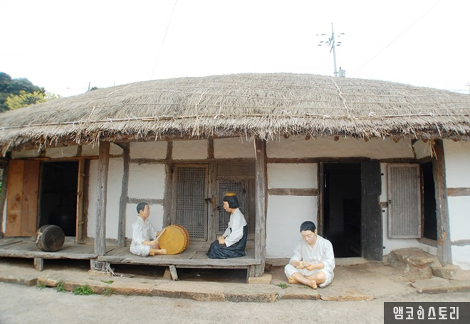 진성의 끝자락에 만나는 마을은 ‘당리마을’이예요. 마을입구에는 영화 <서편제> 촬영 가옥이 있어요. 한국영화 최초 100만 관객을 넘은 기념비적인 작품으로 어린 시절 교육의 목적으로 단체 관람을 강요당했던 기억이 떠오릅니다. 어린 마음에 어린 딸 송화의 눈을 일부러 멀게 했던 떠돌이 소리꾼 유봉의 행위가 어찌나 끔찍했던지…. 그것이 고작 ‘한’을 소리에 심기 위함이라는 사실이 더욱 이해하기 어려웠던 ‘<서편제>의 그 집입니다. 영화의 한 장면을 그대로 재현한 밀랍인형, 초가는 낡고 허술한 관리는 아쉬웠어요.