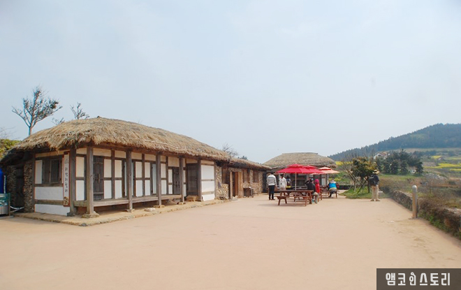 3코스의 종점에서 시작한 길이 2코스를 완주하고 1코스로 넘어갑니다. 영화 <서편제>의 명장면으로 꼽히는 진도아리랑 씬이 촬영된 돌담길로도 유명한 코스는 봄에는 유채꽃과 청보리, 가을에는 코스모스가 길에 수놓아집니다. 언덕 위에는 드라마 <봄의 왈츠> 세트장이 한 폭의 그림처럼 자리잡고 있는데요, 건물 내부를 들어서자 드라마 속 공간이 그대로 재현된 모습이 흥미를 자아냅니다. 서편제 세트장에서는 간단한 요기도 가능한데요, 이곳에서 파전에 동동주 한 잔 걸치니 걷는 맛이 또 새롭습니다.