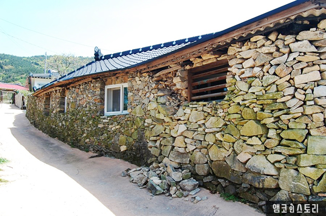 : 상서리와 동촌리를 지나는 길은 마을 전체가 돌담으로 이루어져 있으며 항도로 가는 길은 청산도 비경으로 꼽힐 만큼 아름다운 풍경을 자랑한다.