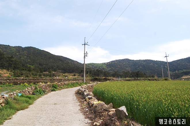 : 상서리와 동촌리를 지나는 길은 마을 전체가 돌담으로 이루어져 있으며 항도로 가는 길은 청산도 비경으로 꼽힐 만큼 아름다운 풍경을 자랑한다.