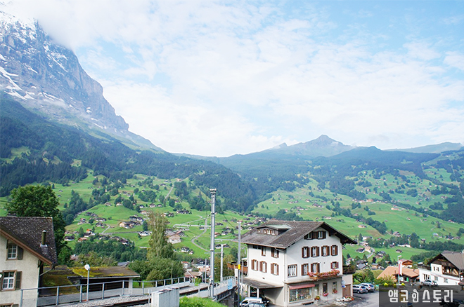 오늘은 인터라켄으로 이동해 기차를 갈아타는 것이 아니라, 인터라켄에서 올라오는 기차를 타고 그린델발트까지 가면 된다. 그린델발트에 도착하니 웅장한 알프스 산맥이 바로 눈 앞에 보인다.