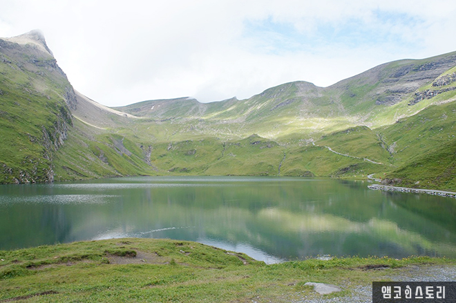 바람이 멈춰 거울 같은 호수에 비친 알프스의 모습을 기다려 보지만, 아쉽게도 이제 피르스트로 돌아가야 할 시간이다. (다음 호에서 계속됩니다)