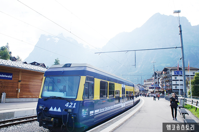 오늘은 인터라켄으로 이동해 기차를 갈아타는 것이 아니라, 인터라켄에서 올라오는 기차를 타고 그린델발트까지 가면 된다. 그린델발트에 도착하니 웅장한 알프스 산맥이 바로 눈 앞에 보인다.
