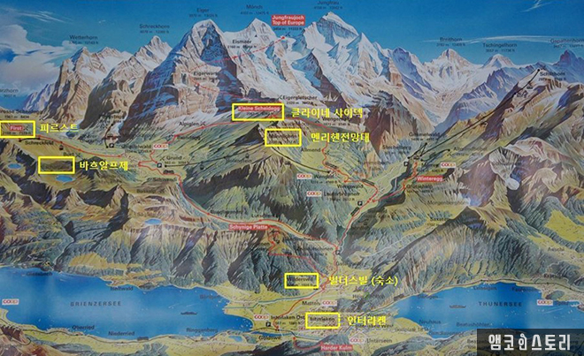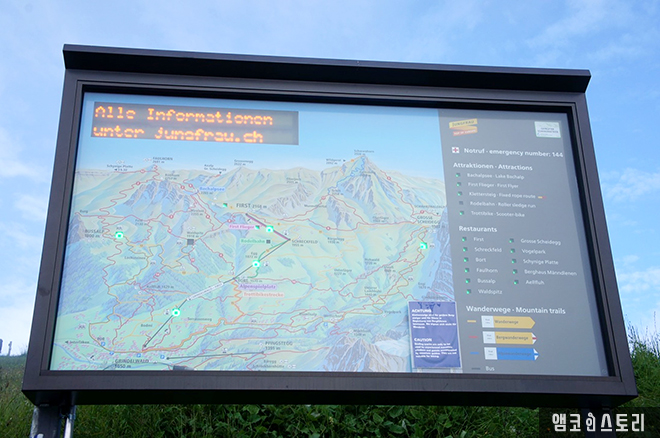 그래서 고심 끝에 내린 결정은 이러했다. 오전에 피르스트 - 바흐알프제 구간, 오후에 아이거 북벽을 보고 걷는 멘리헨 전망대 - 클라이네 샤이덱 코스로 정했다. 오전에 일찍 출발하면 충분히 다녀올 수 있는 일정이다.