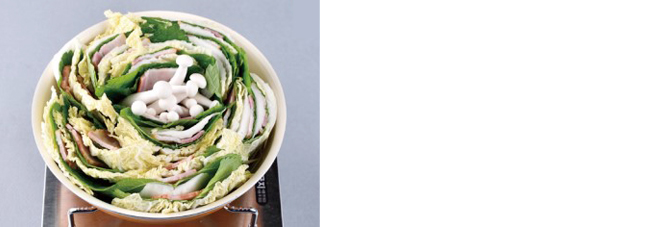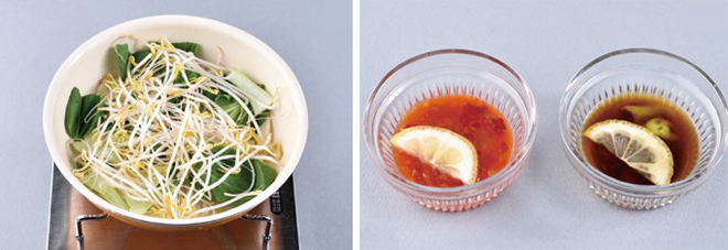 ③ 냄비 바닥에 끓인 무와 청경채, 숙주나물을 깐다.
