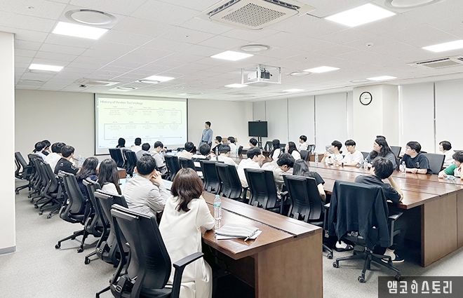 5월 29일, 재능대학교 학생들이 기업 현장견학으로 앰코코리아 송도사업장을 방문하였습니다. 이날 각 부서의 안내로 회사 소개에 이어 회사를 둘러보고 앰코의 56년 역사와 반도체에 관한 이해의 시간을 가졌습니다.