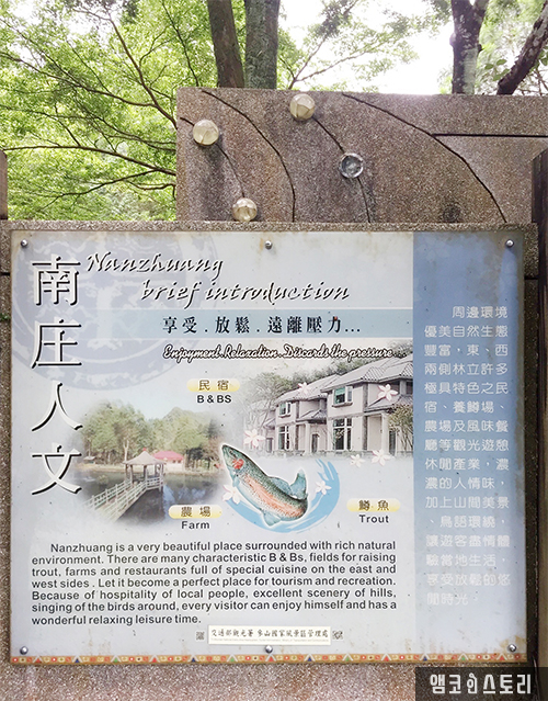 신주(新竹)에서 동남 쪽에 있는 난좡현(난터우현, 南投縣)이라는 곳은 캠핑이나 모터사이클, 자전거 투어를 즐길 수 있는 곳입니다. 1950년 정도에는 난좡현이 광업과 임업으로 무척 유명했다고 하네요. 하지만 이제는 관광업을 더 추진하고 있습니다.