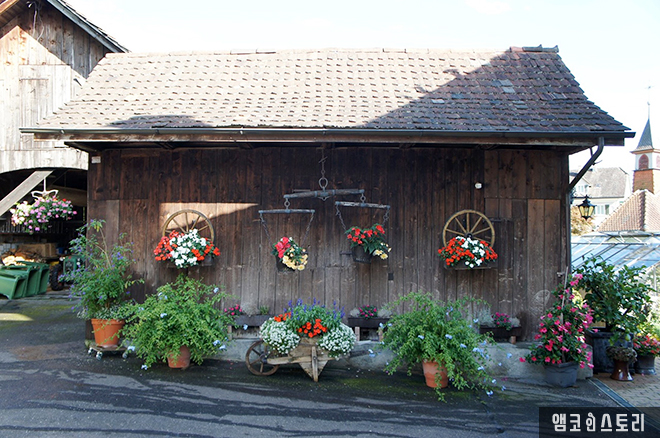 10분 동안 루체른 호수 마을의 골목길을 누비며 호수 선착장으로 걸어가야 하는데 예쁜 꽃들을 보고 걷는 재미가 쏠쏠하다.