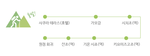 필자가 숙박한 교토역의 호텔부터 산조역까지, 그리고 다시 원점으로 회귀하면 8km 정도입니다. 그중 기온시조부터 산조역 구간은 애니메이션 <명탐정 코난>의 배경이기도 하지요. 밤에는 야경도 아름다워서 아침저녁 언제든 러닝하기 좋은 곳입니다.