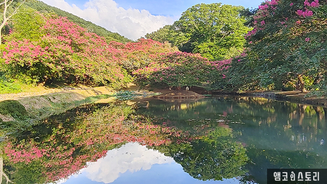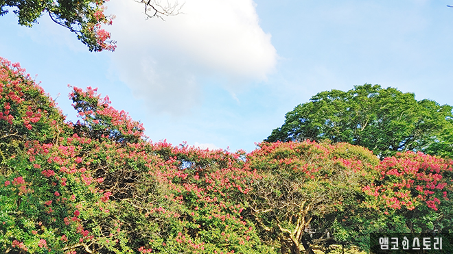 뜨겁고 무더운 여름날, 오후 늦게 배롱나무 꽃(목백일홍)이 만개한 명옥헌에 올라 편히 몸을 기대 땀을 식히며 담소를 나누는 호사를 누렸습니다. 진분홍으로 백일홍 꽃이 만발한 명옥헌은 언제 보아도 아름다운 한 폭의 산수화의 풍경을 선사합니다.