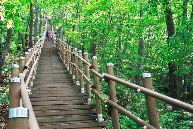 칠갑산에는 모두 아홉 개의 등산로가 있습니다. 장곡사, 대치터널, 천장호, 도림사지, 까치네유원지, 자연휴양림 등을 기점으로 정상에 이를 수 있고, 어느 산길을 택해도 칠갑산을 자연 그대로 느낄 수 있답니다. 사람들이 가장 많이 찾는 코스는 한티고개에서 출발해 장곡사로 내려오는 코스로, 3시간가량 소요됩니다.