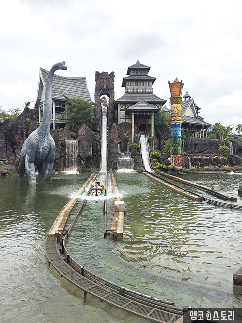 다행인 건, 한국의 테마파크에 비해 사람이 많지 않아 여러 놀이기구를 그리 오래 기다리지 않고 이용할 수 있다는 점입니다. 필자 개인적으로 제일 재미있었던 놀이기구는 ‘후룸라이드’입니다. 아무래도 물에 보트를 타고 가는 놀이기구라 우비를 꼭 챙겨야 하네요.