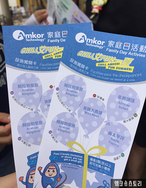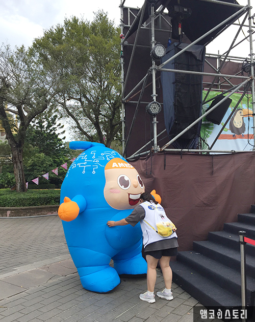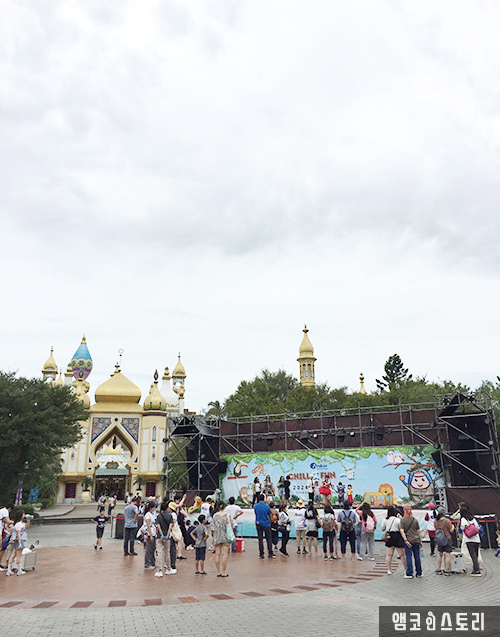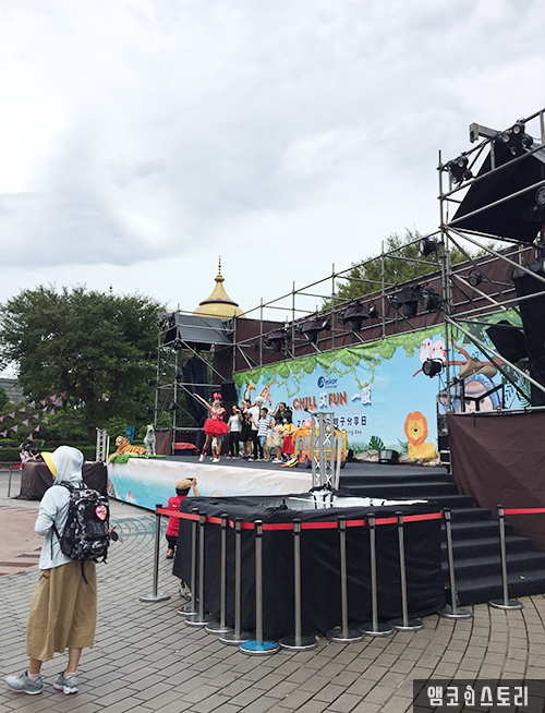 테마파크 입구에 서 있는 간이 조형물이 눈에 띄네요. 안내 마크를 따라 가보니 중앙광장에서 행사 준비를 하고 있습니다. ATT 사원 가족들도 꽤 모였습니다. 진행자의 안내에 따라 아이들이 율동도 하고 선물도 받습니다.