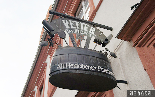 고성관광을 마치고, 다시 아래로 내려간다. 독일에 왔으니 소시지와 생맥주를 맛봐야 할 터! 인터넷에서 심사숙고해서 고른 하이델베르크 생맥주 맛집, Vetter를 찾아간다. 하이델베르크 다리 앞에 있어 쉽게 찾았으나, 만석이라 한참을 기다려 겨우 자리를 잡았다.