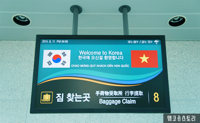 드디어 도착한 인천공항. 태극기가 우리 가족을 반갑게 맞는다.