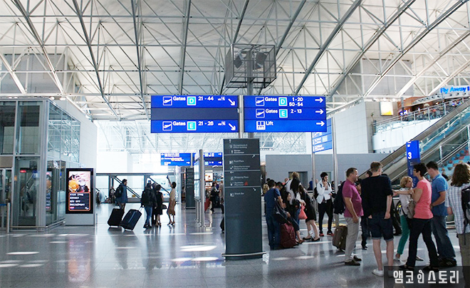 다음날 아침, 공항버스를 타고 프랑크푸르트 공항으로 이동한다.