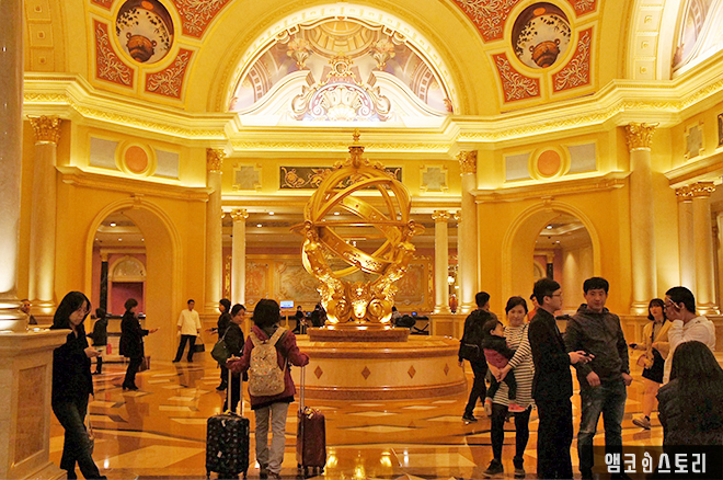 필자가 선택한 호텔은 베네치아호텔이다. 마카오에는 여려 유명한 호텔들이 있지만, 가격과 여행 동선을 고려하여 결정했다. 화려한 호텔 내부는 온통 금색으로 칠해져 있어 일확천금을 노리고 마카오로 몰려온 겜블러들을 흥분시키기에 충분하다.