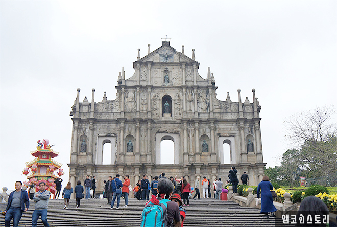 마카오 역사지구의 하이라이트라 할 수 있는 성바울성당이다. 17세기에 건설된 중국 최초의 교회 건축물인데, 19세기 중반 화재로 전소되어 성당의 전면 외벽과 66개의 계단만이 덩그러니 남아 있다. 마카오를 찾는 많은 관광객들의 포토존이기도 하다.