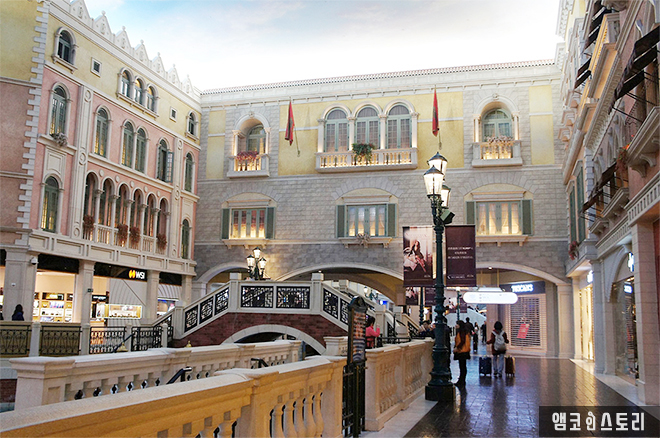 호텔 내부를 들어서면 베네치아 운하에 온 듯 착각을 일으킬 정도로 정교하게 그려 놓은 실내 운하가 있다.