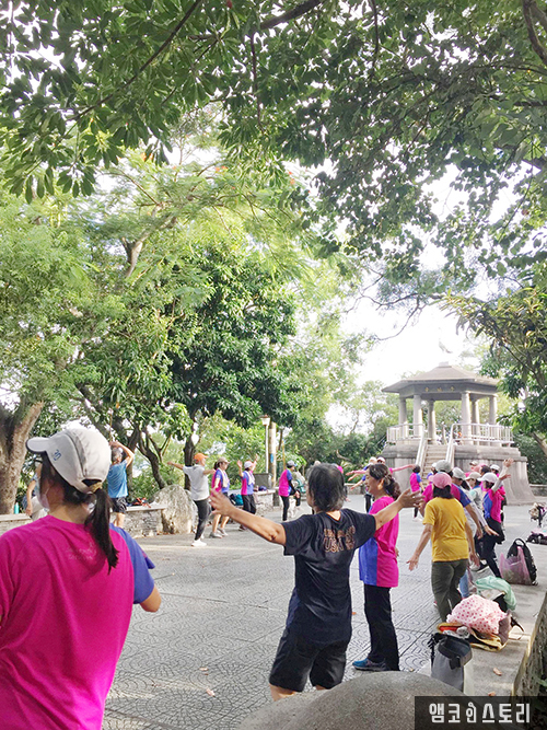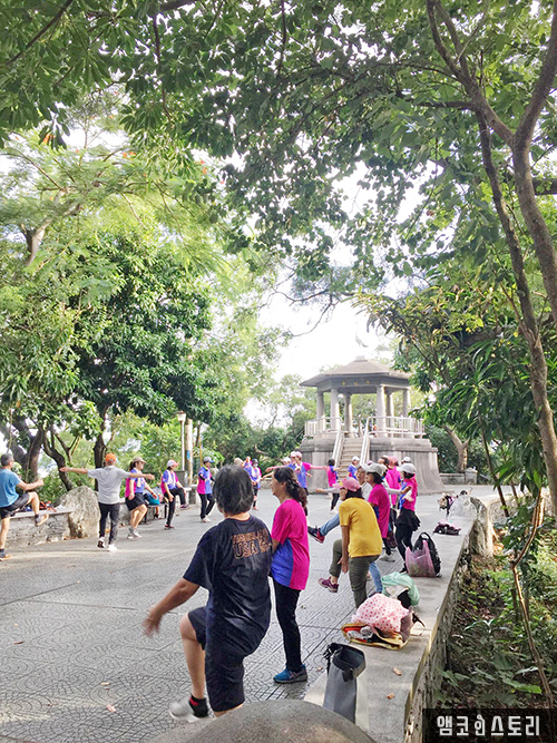 10월에 들어서면서 아침저녁으로 25도 내외의 선선함이 찾아왔네요. 야외 운동이나 바깥 활동하기에도 좋은 것 같습니다. 대만에서도 날이 선선하고 야외에서 활동하기 좋아지면서 여러 이벤트들이 개최되는데요, 마침 동네 근처 산에 갔는데 에어로빅 행사가 열리고 있었습니다. 신주시에서 주최를 한 자리였습니다.