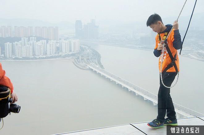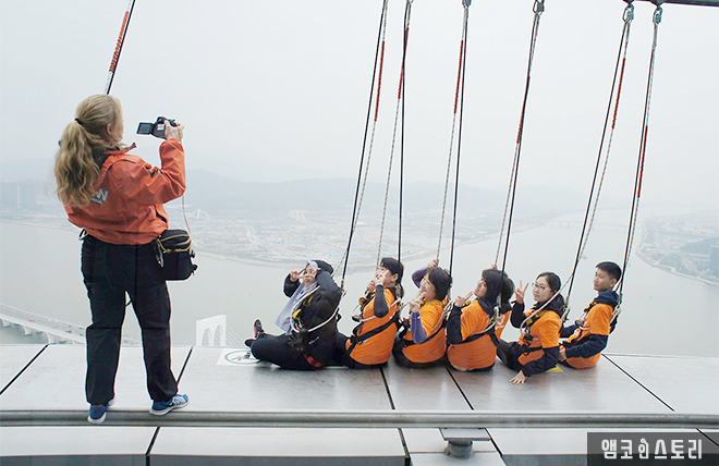 아이들은 액티비티 중 스카이워크를 선택했다. 스카이워크는 223m 높이에서 빌딩을 한 바퀴 걸어보는 프로그램인데, 번지점프가 무서운 사람들이 대안으로 선택하는 프로그램이기도 하다. 스카이워크를 즐기기 전에 서약서를 꼭 작성해야 한다.