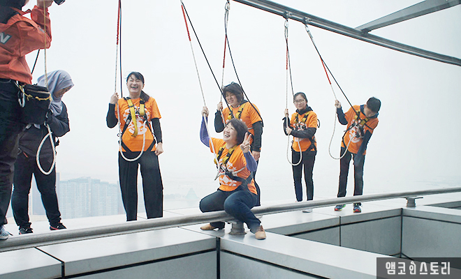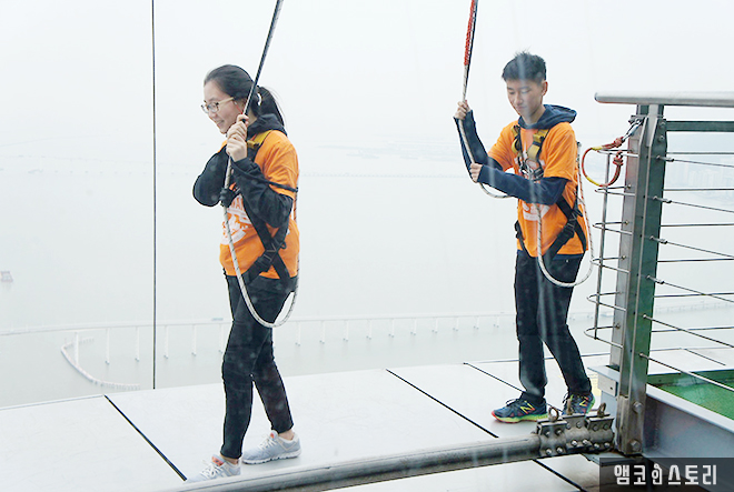 아이들은 액티비티 중 스카이워크를 선택했다. 스카이워크는 223m 높이에서 빌딩을 한 바퀴 걸어보는 프로그램인데, 번지점프가 무서운 사람들이 대안으로 선택하는 프로그램이기도 하다. 스카이워크를 즐기기 전에 서약서를 꼭 작성해야 한다.