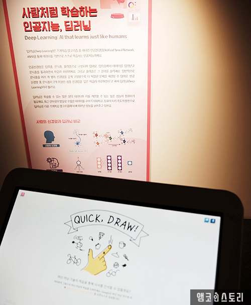 2층 전시관에는 나만의 아바타를 통해 만나는 미래 인공지능 세상을 경험할 수 있어요. 총 16개의 전시물 체험이 가능한데요, 먼저, 아바타 터널을 통해 오프라인 메타버스로 로그인을 합니다. 인공지능이 일상화된 미래 광주, 도심 곳곳에 숨어있는 인공지능을 찾는 미션 영상을 체험합니다. 퀘스트 머신은 관람객이 고른 카드에 단어를 맞춰가는 과정을 게임으로 체험하는 전시품이에요. 쉽게 말해 AI와 하는 스무고개 정도라고나 할까요. AI는 사람처럼 학습하기도 해요. 사람의 신경망을 모델링한 딥러닝 개념과 학습과정을 영상 체험 콘텐츠를 통해 이해해 봅니다.