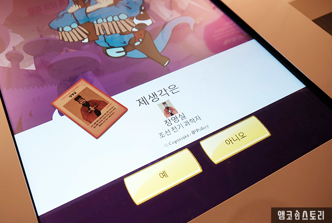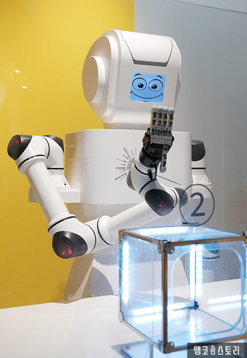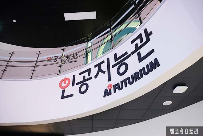 건물을 들어서면 가장 먼저 인포메이션에서 QR 카드 목걸이를 받아요. 시설물 관람을 위해 꼭 필요한 것으로 무인 등록을 하며 나만의 아바타도 만들 수 있답니다. 로비 중앙으로 거대한 구조물이 눈길을 사로잡아요. 일명 ‘AI 타워’라 불리는 이것은 인공지능관 대표 전시물로 앞으로 만나게 될 다양한 전시를 통해 수집한 데이터를 변환하여 인공지능에 대한 관람객을 영상으로 표현한 것이에요. 백남준의 비디오 아트가 생각나기도 하는 구조물은 과학과 아트의 만남의 결정체를 완성합니다.