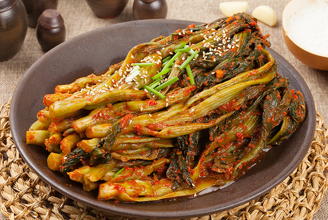기다란 줄기가 정말 생소했다. 열무 모양도 아니었고, 잎이 넓적한 근대 모양도 아니었다. 먹기 좋은 크기로 썰어 놓은 갓김치를 들고 엄마와 나는 입에 넣어 보았다. 약간은 짭조름한 맛에 아삭아삭 씹히는 식감이 싫지는 않았다. 갓김치가 이런 것이라는 처음 접해 본 것이다. 밥 한 술 뜨고 갓김치 한 조각을 올려 입에 넣어야 비로소 제 맛이 났다. 그냥 맨입으로 먹기에는 다소 짜다는 느낌을 받았지만, 밥과 어우러지다 보니 간이 제대로 맞았다.